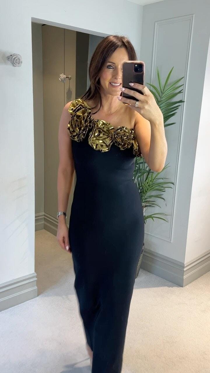 Sculpted Bloom Couture Mermaid Black Midi Dress