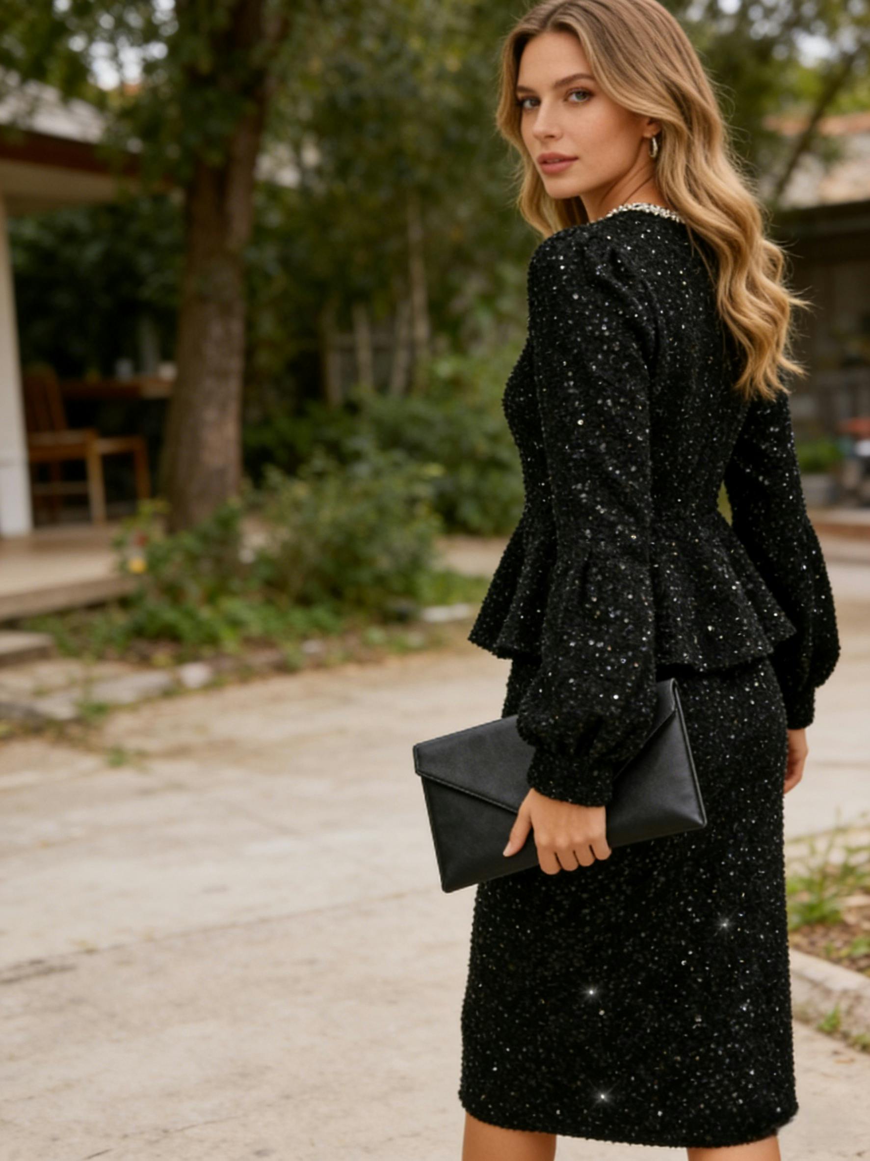 This sparkly co-ord set in black adds a hint of glamour to your everyday wardrobe. Designed with a comfortable fit and elegant shine, it’s ideal as a black glitter outfit for daily wear or business events. Sophisticated yet easy to style, it’s your go-to set for polished confidence.