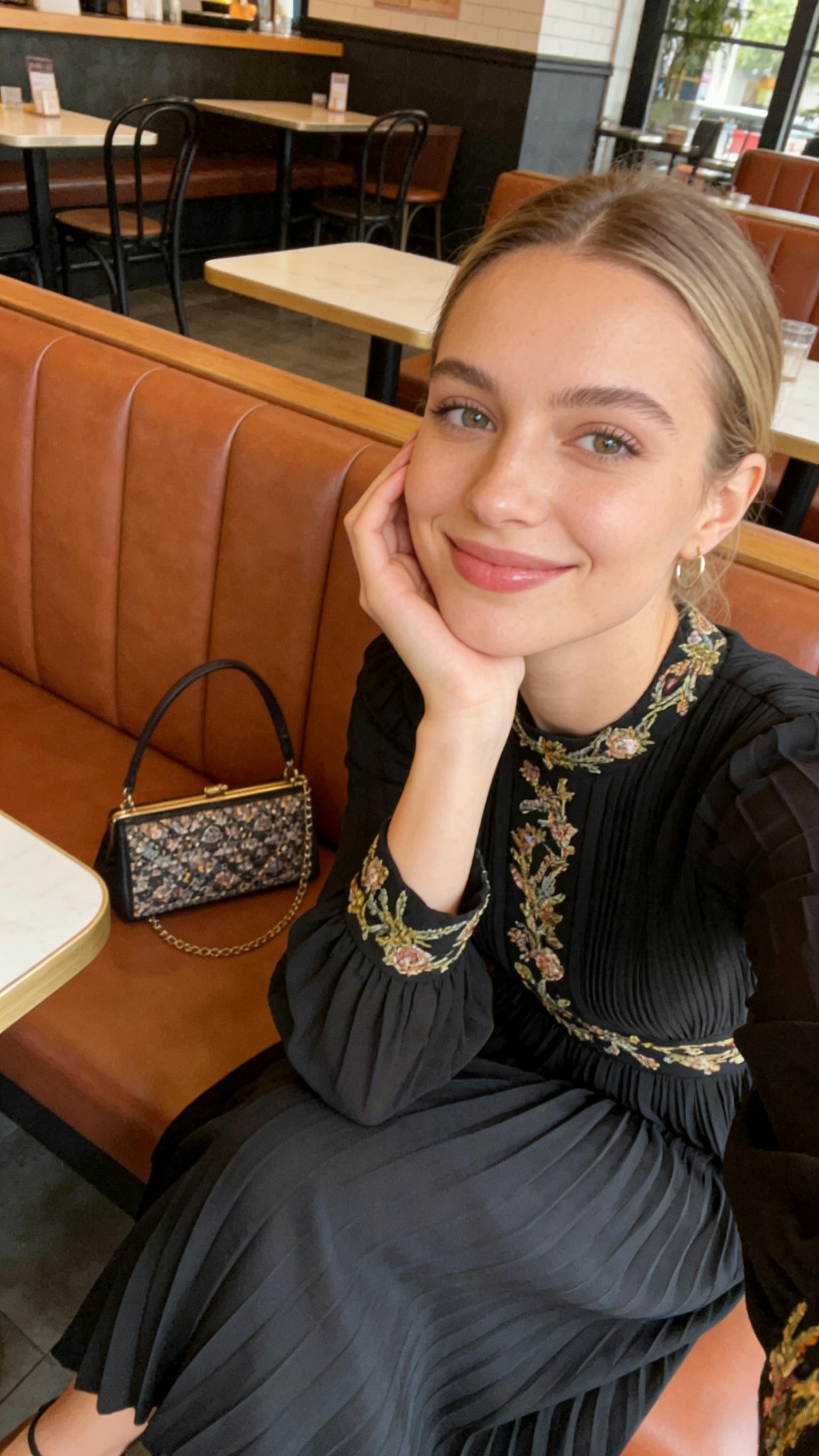 - Gold beading embellishment