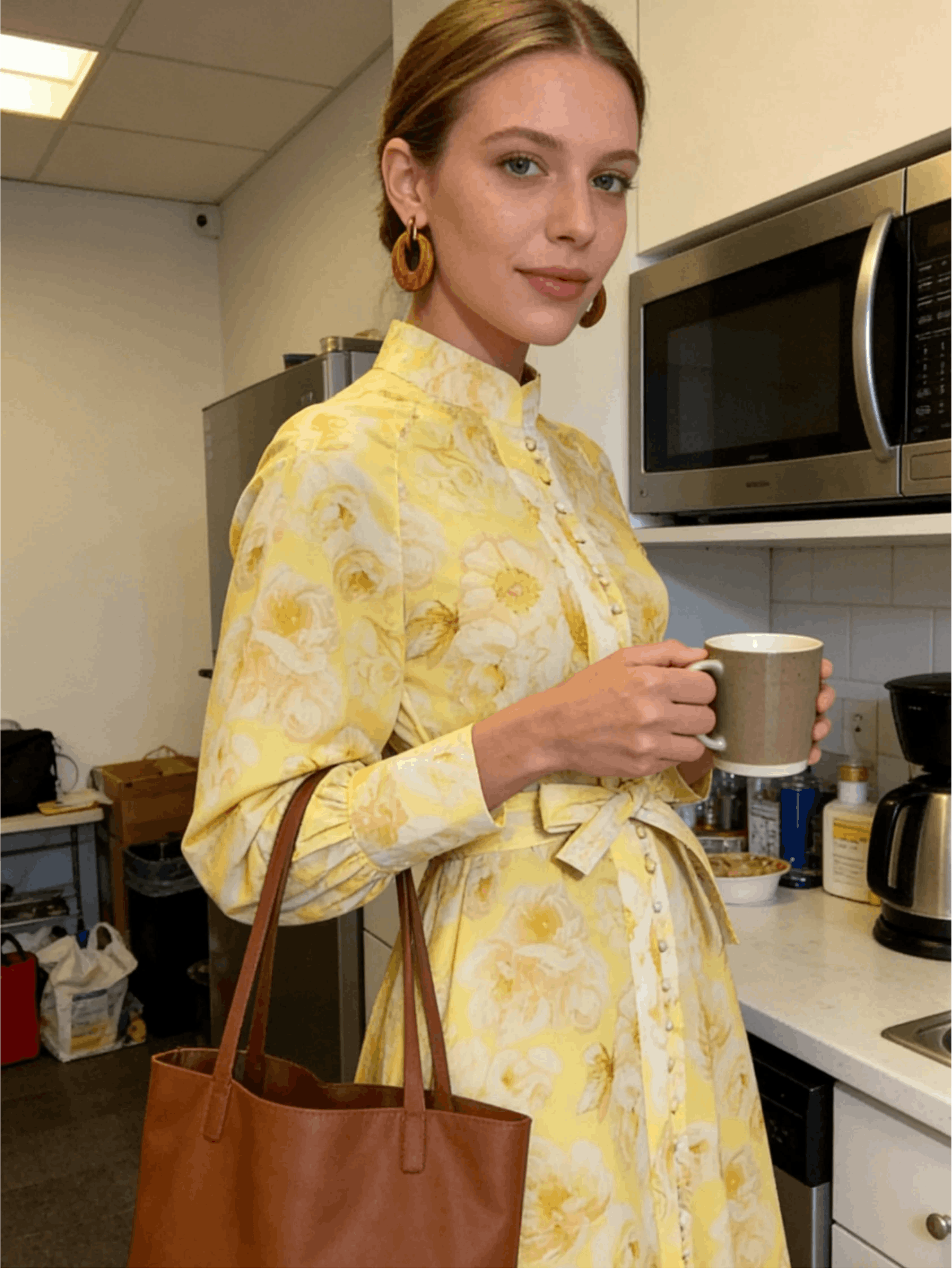 This yellow vocation dress is the perfect blend of comfort and style for your holiday. Featuring a high neckline, waist tie design, and all-over floral print, this floral print midi dress brings a fresh, relaxed vibe to your vacation wardrobe.