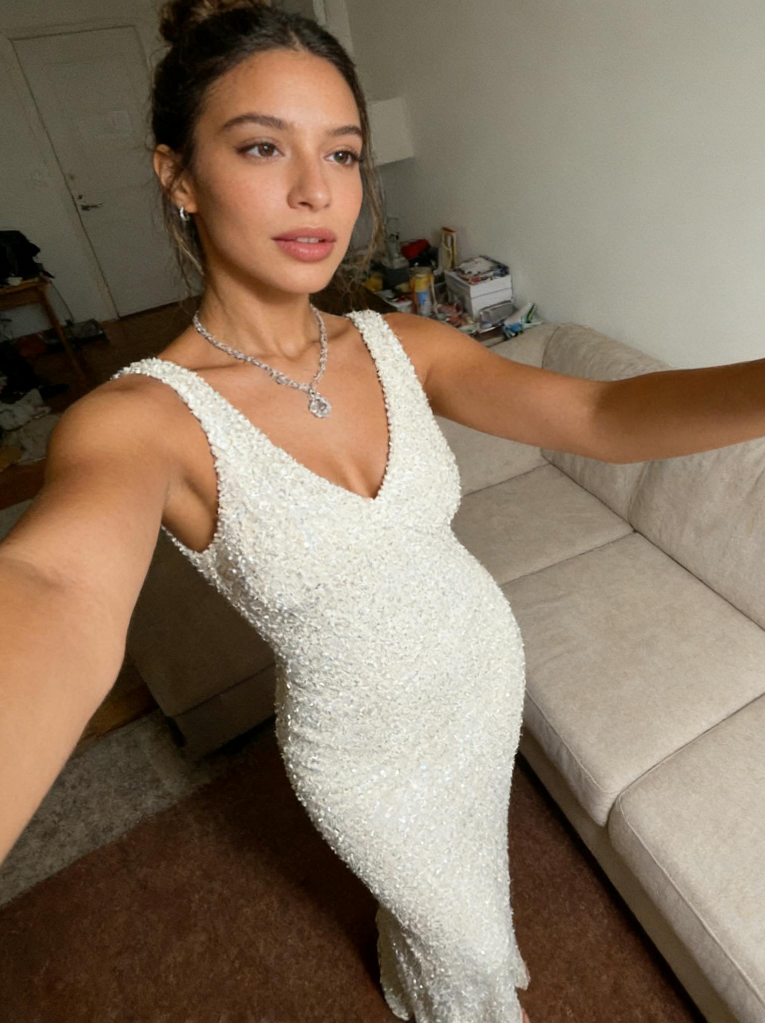White Sleeveless Sparkly Evening Midi Dress