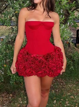 Mini-robe bustier rouge duveteuse